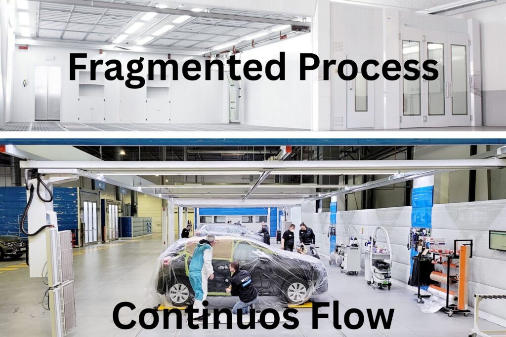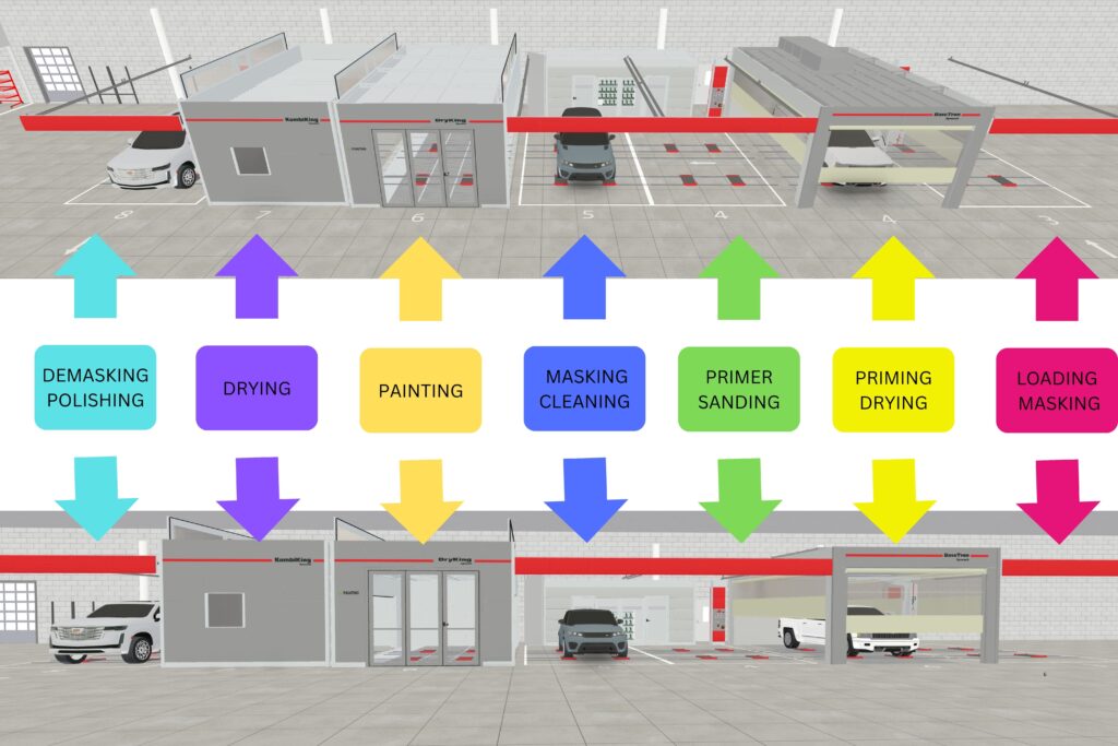 Many body shops are designed by adding equipment over time, based on available space rather than workflow.