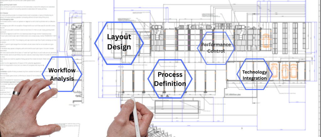 It integrates preparation and painting into a continuous flow, supported by technology and operational procedures.