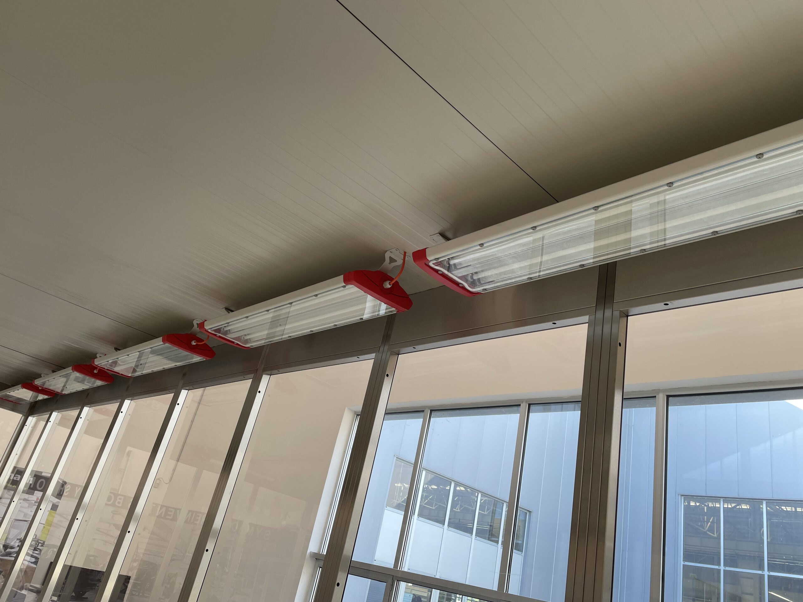 The paneling frame is made of stainless steel, while the transparent part is made of polycarbonate, also known as plexiglass.