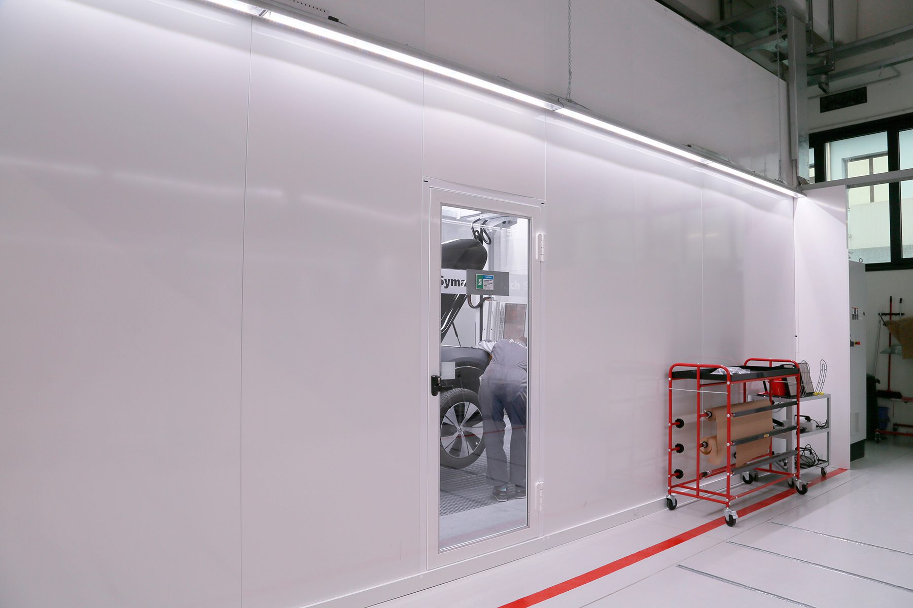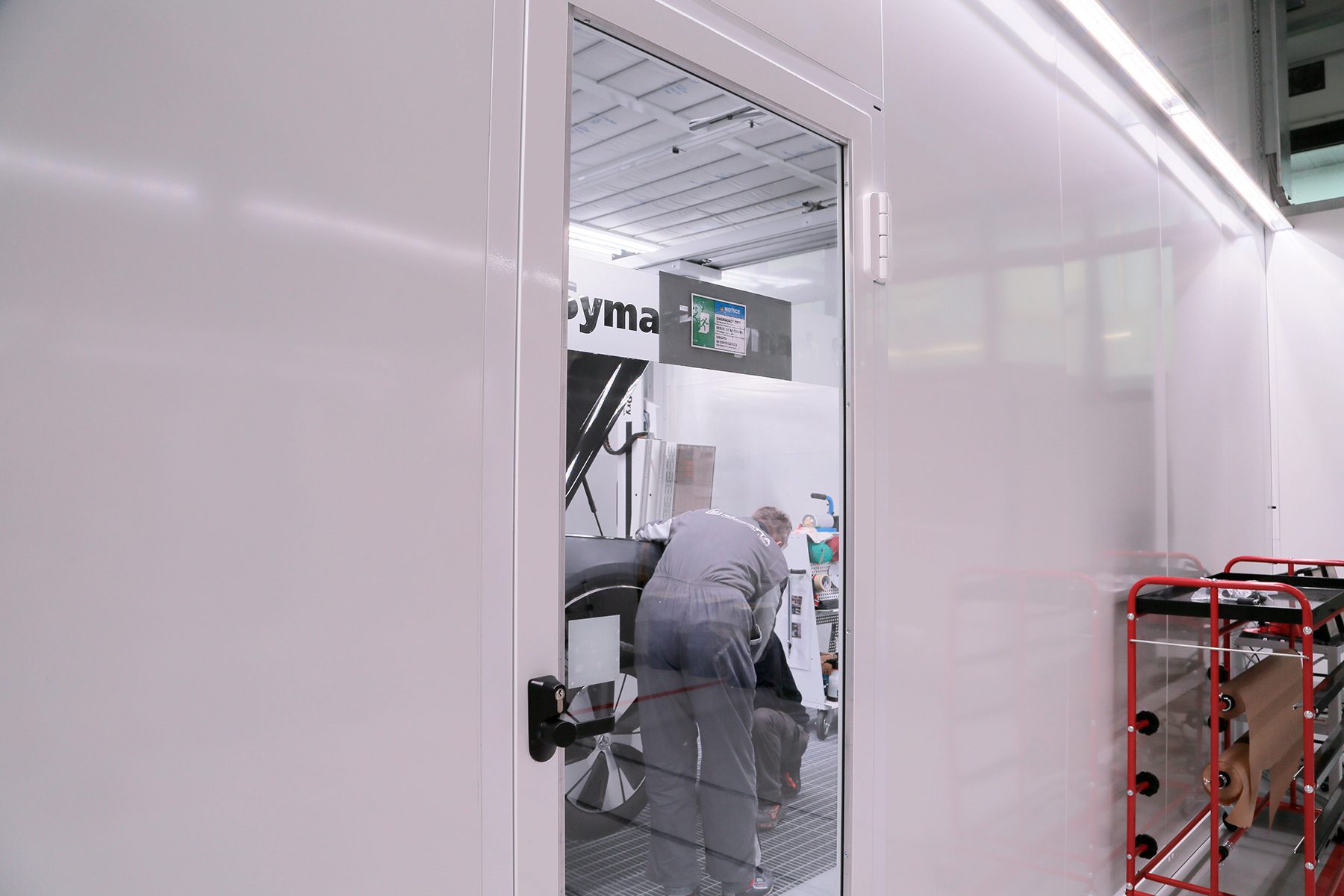 According to some countries’ legislation, when a spray booth exceeds 7 meters ( 23 ft) in length, a second emergency door is required in addition to the one already installed in the main door.