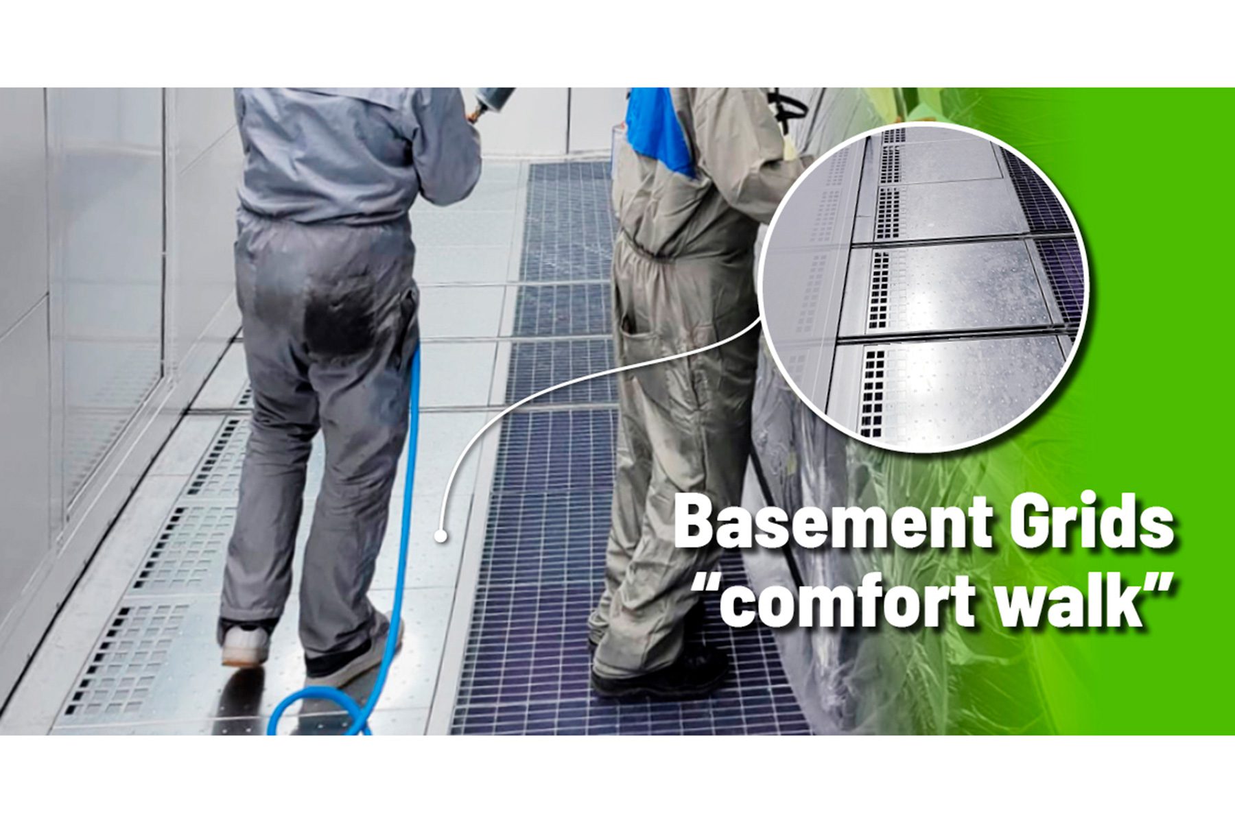 The painter walks on a solid surface with less fatigue of the legs and feet compared to working on a grid.