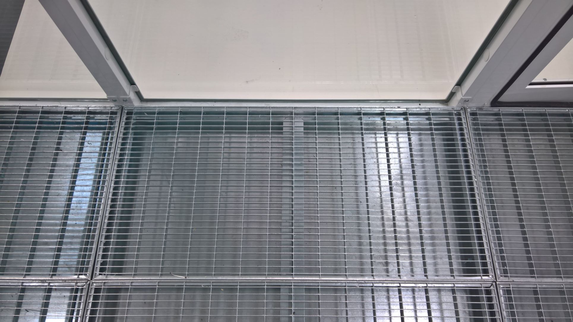The configuration includes two solid modules at the ends, two access doors, and two glass windows.