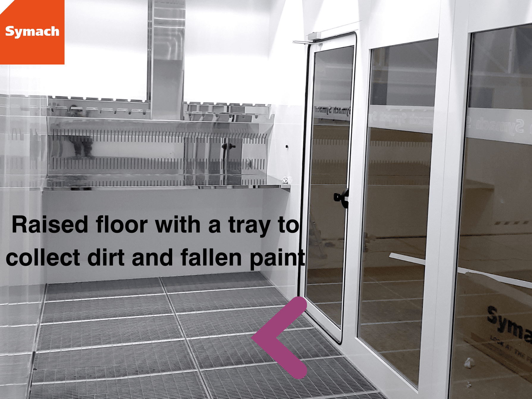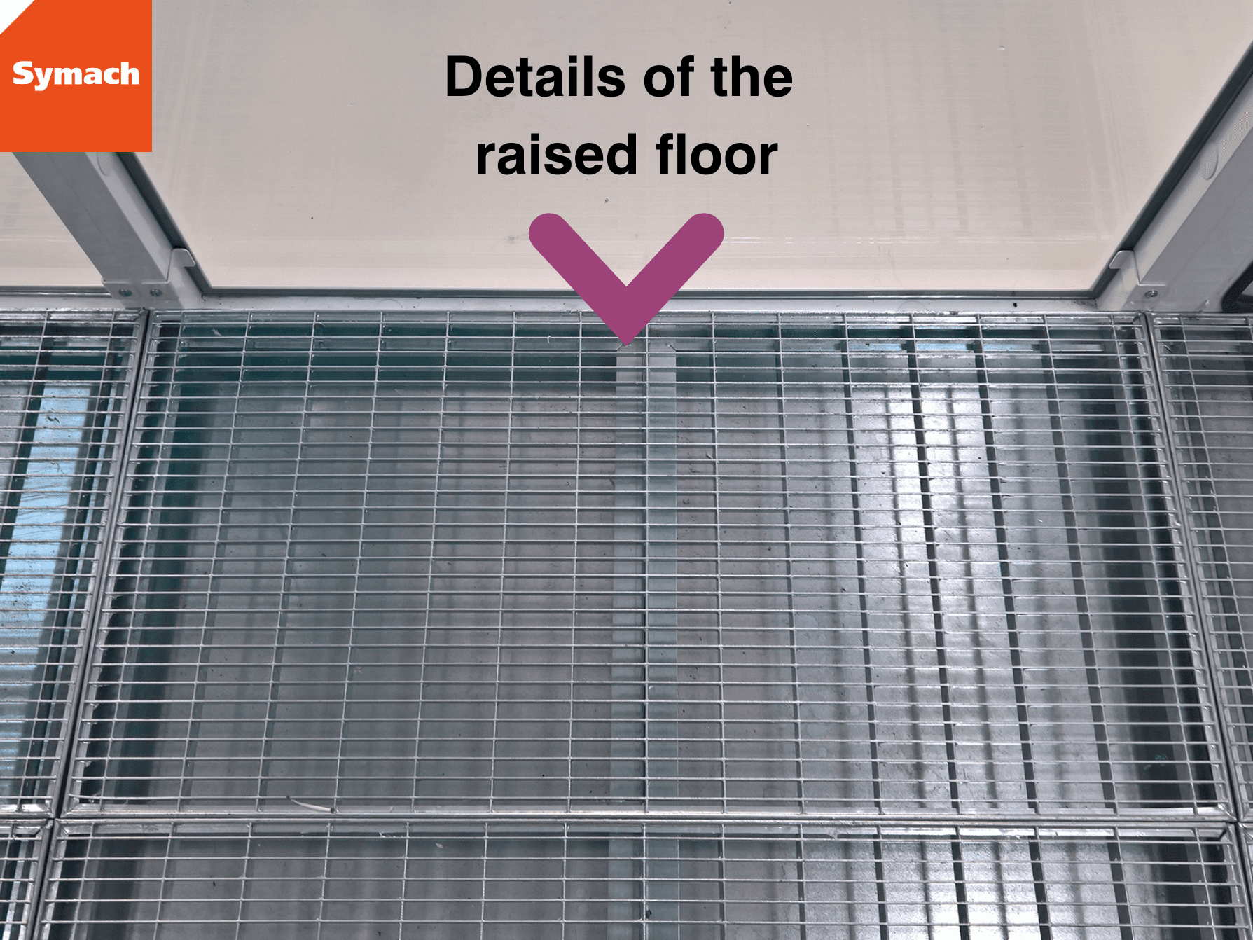 – The elevated floor with grids and a metal pit.